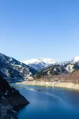 🚍 Starting from Ogizawa, first take the electric bus for about 15 minutes to Kurobe Dam Station, where you can enjoy the beautiful scenery of Lake Kurobe. The reservoir gates are opened in summer but not in other seasons, but the scenery of snow-capped mountains and the lake is still breathtaking.