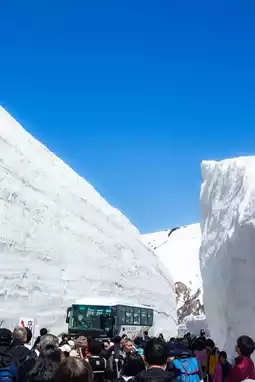 🚌 Transfer to the bus at Daikanbo and you will arrive at Murodo Station in about 15-20 minutes. Come out of Murodo Station and follow the signs to the canyon to admire the snow walls. There are two ways to the highest point, one is the highway and the other is a hiking trail on the snow. It is recommended to take the highway on the way there and take the snow road on the way back (or vice versa), so that you don't have to go back and experience different routes.
