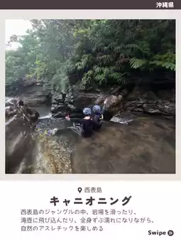 Enjoy natural athletics in the jungles of Iriomote Island, sliding down rocks, jumping into waterfalls, and getting completely soaked.