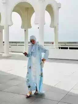 Headscarf, small bag, embroidered flowers, the blue color is very close to the sea and sky.