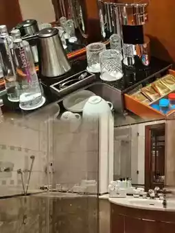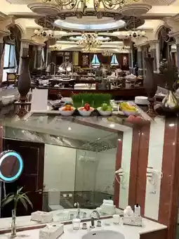 You must stay in the sea view suite!🌅 Floor-to-ceiling panoramic windows look straight out to the Red Sea sunrise🌅, with silk embroidery of the "One Thousand and One Nights" story📖 at the headboard, drifting off feels like entering an Arabian fairy tale~🛌 The bathroom is fully clad in snowflake marble with golden faucets🛀, soaking while watching yachts glide across the sea~🛥️ The living room comes with an Arabian hookah🚬, paired with saffron tea and dates, creating an atmosphere that’s simply divine!
