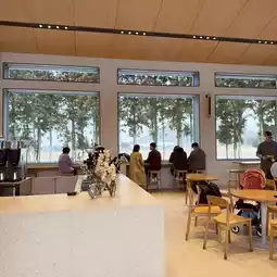 🩵Comfortable Indoor Atmosphere: The warm wood-tone interior and the natural scenery visible through the large windows create a comfortable atmosphere.