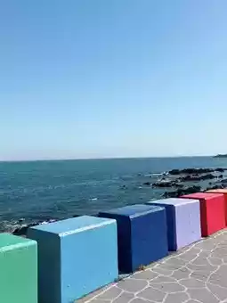 The Rainbow Coast Highway is 2.81km long and is the most beautiful coastal scenery in Jeju Island! It's beautiful here when the weather is good. With the sea and sky as the background and the colorful stone curbs as the backdrop, the whole road looks colorful. Many people are taking photos along the way, but the coastline of the colorful stone curbs is also very long, so it doesn’t feel crowded when taking photos. You can enjoy the sea all to yourself!