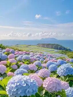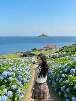 🌼 Udo Island: Take a boat to Udo Island. Besides the charming beaches, the island's hydrangeas offer a unique charm. The gentle sea breeze sways the hydrangeas, forming a unique romantic island scene against the backdrop of the blue sea and sky.