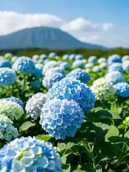 🌼 Hallim Park: In addition to vibrant hydrangeas, the park boasts various rare plants and unique geological landscapes. Stroll along the winding paths, surrounded by blooming hydrangeas, as if stepping into a fairy tale. By the park's lake, the hydrangeas reflect in the water, creating a stunning symmetrical picture.