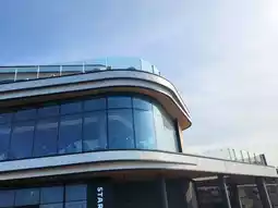 🏅A place with Starbucks Drive-Thru, parking lot, and rooftop