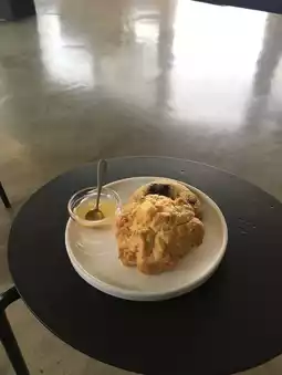 We ordered iced Americano, almond mocha, scones, and cookies. The scones were dense and classic, and you can enjoy them with cute apple jam and butter. The cookies were sweet and delightful, and the iced Americano had a rich flavor with a hint of acidity.