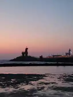 The sight of the white horse and red horse lighthouses standing side by side at the end of the sea is truly impressive,