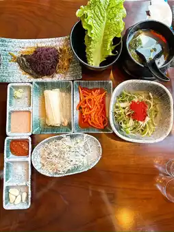 Another feature is that the side dish is a Jeju-style seaweed assortment.