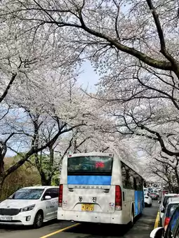 A 12-km pink tunnel of blossoms! This is Jeju’s most iconic cherry blossom street.