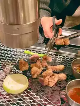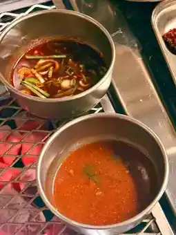 Inside, the restaurant offers tables that can accommodate groups, furnished with retro-style furniture reminiscent of a museum exhibit, giving the feeling of traveling back in time. The chairs are designed to store coats and padded jackets, preventing them from absorbing the smell of charcoal-grilled meat.