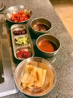 When you order 500g of salt-grilled pork, the charcoal grill is brought to your table along with a special sauce developed by Yeondong Gongyuksa and a side of fermented fish sauce. Although the staff doesn't grill the meat for you, the high heat of the charcoal allows you to cook the meat quickly. Once cut into bite-sized pieces, the pork is tender and flavorful.