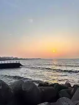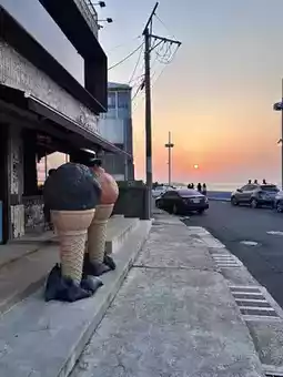 The café also features a unique wave projection on the second floor, creating an immersive seaside experience indoors. For the best views, head to the rooftop and enjoy the expansive ocean panorama.