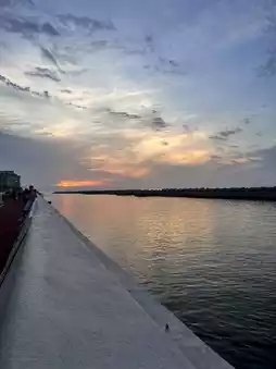 Walking from Yonghyeon Bridge to Yongduam Rock is enjoyable, and you can watch planes flying right in front of you. The weather is great, and there are interesting sights to see. If you follow the coastline, you'll find the Dodu Rainbow Coastal Road nearby. Heading further down to Aewol Coast, there's a seafood ramen restaurant with an amazing broth. In the distance, you can see the wind turbines along Sinchang Coastal Road.