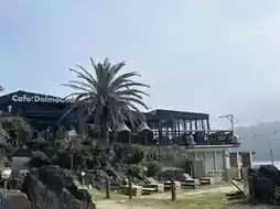 It's nice to sit on a chair in front of the cafe, take pictures, and look at the sea.