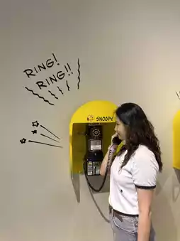 Take a lovely photo with the yellow telephone and enjoy the bonus of hearing the voices of the main characters! Just a tip: Snoopy's voice is quite loud, so avoid holding the receiver too close to your ear.
