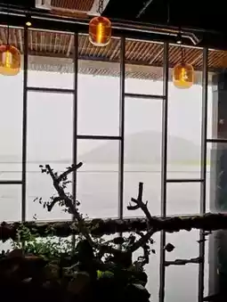 The rainy weather and misty view outside the window harmonized beautifully with the cozy ambiance inside the cafe.