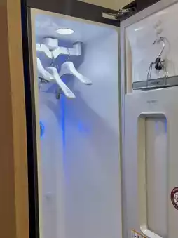 The room is equipped with a curling iron and an LG Styler 😳—major bonus points!