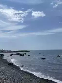 The contrast of the blue ocean with the black sand and pebbles creates a stunning and refreshing scenery that feels truly special.