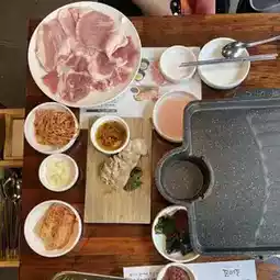 As soon as I entered the store, I was surrounded by the aroma of charcoal and the warm atmosphere. The staff kindly greeted me to take a seat and immediately started grilling meat for me. They moved quickly and placed the black pork belly on the grilling plate. While grilling, they explained how to eat it, so I didn't have to worry about the degree of doneness and the heat. After the meat was grilled, it was cut into bite-sized pieces and served with citrus vinegar sauce or salt. It was a paradise for taste buds. 🤤