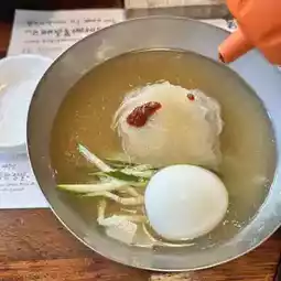 Halfway through the meal, I remembered that I had just seen the words "Check in and get free cold noodles" on the wall, so I took out my phone and took a photo and uploaded it to SNS. Then I asked the staff in Korean: "Can I have a bowl of cold noodles each?" (I want to have one bowl of cold noodles and one bowl of dry cold noodles each). Unexpectedly, the staff smiled and said, "You speak Korean very well. Have you studied in Korea?" That moment was really a great sense of accomplishment. It made me completely forget the low temperature outside and feel warm in my heart. 🥰