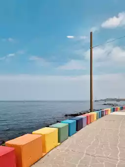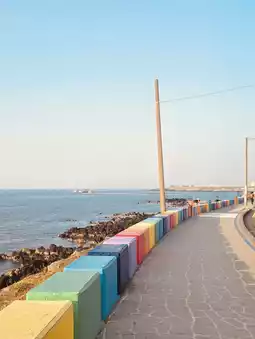 Dodu Rainbow Coastal Road offers a wonderfully refreshing and charming experience for those who prefer to explore on foot or by bicycle. Beyond just a scenic drive, the vibrantly painted rainbow barriers create a cheerful and inviting pathway along the coast. Walking or cycling here allows you to truly soak in the playful atmosphere, feel the fresh sea breeze, and enjoy the continuous panoramic views of the ocean. It's a relatively flat and easy path, making it suitable for all ages and fitness levels. The unique visual element of the rainbow colors adds a whimsical touch to your coastal stroll, turning a simple walk into a delightful and memorable experience that feels distinctly Jeju.
