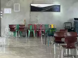This cafe is a renovated old resort featuring high ceilings and arched windows that offer a panoramic view of Saebyeol Oreum. The bakery menu, styled like a lunchbox, pairs perfectly with their lattes.