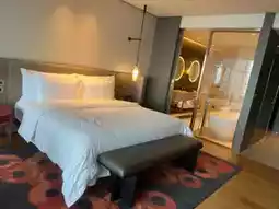 Our room was a serene retreat, with breathtaking city views and all the comforts of home. The beautiful bathroom was a highlight, featuring a spacious soaking tub that was perfect for unwinding after a long day. We enjoyed the hotel's buffet, which offered a delicious spread of dishes.