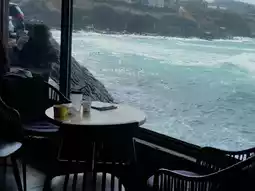 We had to order a drink each to get in, but the scenic spot was totally worth it. Settling into seats inside, we took in the breathtaking ocean views.