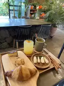 Breakfast includes your choice of drink, bread, and fruit in the morning!