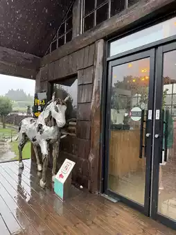 The wooden ticket office of "Saebyeol HEY-YO! Alpacas" resembles a hunter's lodge in the northern forests, its warm yellow lights radiating warmth on a rainy day. Upon entering, the scent of wood and grass blends together, and gentle "Hey-yo!"s greet visitors.