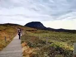 Autumn on Hallasan Mountain is a blend of summer and winter, offering a mix of green, brown, and the red of autumn foliage.