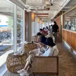 There are three floors. The first and second floors offer different views of the ocean. The first floor has a selection of breads to choose from. Their food is photogenic and quite delicious, with no disappointments. They have sweet and savory options to choose from, and the prices are reasonable.