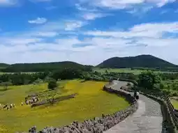 Located in eastern Jeju, Sangumburi is a natural monument with a crater preserved in its original form. 🌾 The area inside and around the crater is particularly famous for its silver grass fields in autumn, with waves of silver grass swaying in the wind creating a spectacular sight. In spring, the fields unfold in a verdant green, and in summer, the contrast of the blue sky creates a refreshing atmosphere. In winter, the snow-covered fields exude a serene charm. The walking trail surrounding the crater is easy for anyone to follow, and the summit offers views of Seongsan Ilchulbong Peak and Hallasan Mountain, making it a popular viewing spot. 🍂