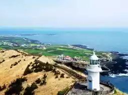 Perched at the tip of Udo Island, Udo Lighthouse offers a striking contrast between the blue sea and the white building. The area around the lighthouse is a popular trekking course, offering breathtaking views and a cool sea breeze. The sunrise and sunset are particularly beautiful, attracting many travelers seeking photos. The lighthouse, nestled against the surrounding silver grass fields, creates an exotic atmosphere, showcasing a different charm each season. Udo Lighthouse, adding to the tranquil atmosphere of Udo, is a highlight of any island trip.