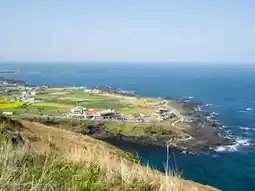 Udobong Peak, located on Udo Island, is the island's highest point. Climbing to the summit offers a panoramic view of the main island of Jeju, Seongsan Ilchulbong Peak, and the azure sea. The scenery, with its swaying grasslands and crashing waves beneath the cliffs, is truly breathtaking. The path is relatively gentle, allowing for a leisurely stroll, and along the way, you'll encounter Udo's grasslands and villages. The breathtaking panorama of blue sky and sea is photogenic, allowing you to experience both the romance of an island getaway and the rugged charm of nature.