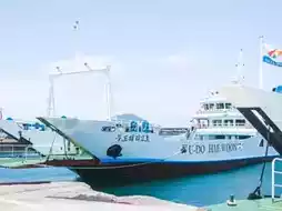 As you board the ferry, a refreshing breeze greets you, and the approaching scenery of Udo fills you with anticipation.