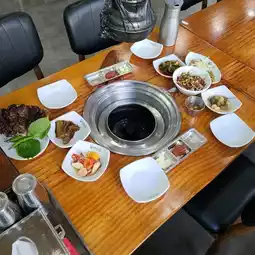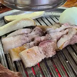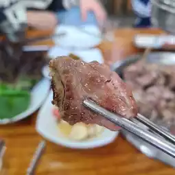 This is a great spot near Jeju Airport to enjoy authentic black pork barbecue. The menu offers a variety of options, including pork belly, assorted skewers with special cuts, whole ribs, and pork tomahawk, allowing you to choose according to your preference. The large skewers are fun to grill, combining meat, mushrooms, and vegetables, and the side dishes like fermented fish sauce, green onion salad, and fresh wrap vegetables are clean and satisfying. With generous portions and high-quality meat, this restaurant is popular among both locals and tourists. Its proximity to Jeju Airport makes it a recommended dining spot before or after your trip.