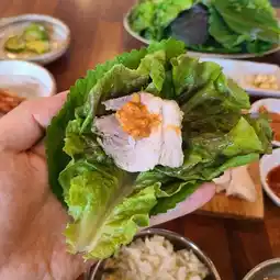 This restaurant near Jeju Shinhwa World and Donggwang Meat Market offers a hearty ssambap set meal. The ssambap set meal is popular, featuring a variety of ssam vegetables, boiled black pork, braised mackerel, and steamed eggs. The Dombe meat is also exceptionally tender and savory, with no gamey odor. The restaurant's clean interior and friendly staff make it a great choice for families. Open from 9 a.m., it's convenient for late lunches and dinners, and parking is readily available for easy access. The Dombe meat can take some time to cook, so it's best to arrive early.