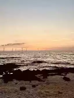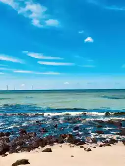 Gwakji Beach provides endless visual appeal for photographers, especially during the golden hours of sunrise and sunset. The long stretch of clean, white sand contrasts beautifully with the blue water and the occasional dark basalt rock formations scattered along the coast. The subtle curves of the shoreline and the distant views create fantastic compositional opportunities. Furthermore, the charming atmosphere created by the people swimming and the local amenities adds a wonderful sense of life to the scene. It’s a truly picturesque location that captures the unique blend of scenic beauty and vibrant seaside culture that defines the Jeju experience.