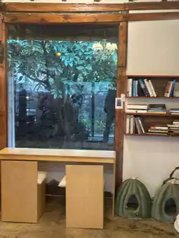 Unfortunately, I didn't see any cats that day, but the books on display were freely available, making it the perfect atmosphere for a quiet read. 📚