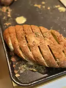 Manong Bread (garlic bread), generously filled with garlic butter,