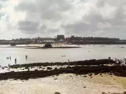 A distinctive feature of Sinheung-ri Beach is the presence of a lovely pine forest (송림) situated directly behind the sand. This grove of trees provides crucial natural shade and a wonderfully fragrant, cool retreat from the midday sun. It's an ideal spot for setting up a picnic or simply relaxing on a blanket while still enjoying the sea breeze. This combination of beautiful sand, clear water, and a natural shaded area creates an appealing and comfortable environment for spending an entire day by the sea.