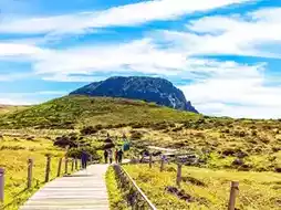 For lunch, I visited a local restaurant in Jeju City to recharge my energy from the hike. I particularly enjoyed the "reward mentality" of grilling thick cuts of meat at a famous black pork restaurant near Hallasan. Alternatively, you can opt for hearty Jeju dishes like momguk (Korean beef soup) or gogiguksu (noodles with meat). In the afternoon, we visited Eco Land Theme Park near Hallasan Mountain. A comfortable train ride through the Gotjawal primeval forest allowed us to rest our weary legs and experience the wonders of Jeju's nature. For our final stop, we chose Sangumburi, where we admired the vast expanse of silver grass. Gazing at the silvery silver grass swaying in the wind from the summit, the lingering memories of our Hallasan climb contrasted with the peaceful Jeju landscape, leaving us deeply moved. While climbing Hallasan Mountain is challenging, the effort is rewarded with a seamless, interconnected course that allows us to experience some of Jeju's most beautiful forests and oreums.