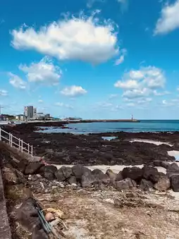 Pyeongdaeri Beach is the epitome of quiet coastal beauty. Unlike the busier, more famous beaches, Pyeongdaeri offers a genuinely peaceful atmosphere with its signature emerald-green, shallow waters. The beach is characterized by stretches of soft sand interspersed with dark volcanic rocks, creating a stunning visual contrast. It’s an ideal spot for visitors who prioritize tranquility, allowing for long, contemplative walks and quiet relaxation by the sea, far from the tourist crowds.