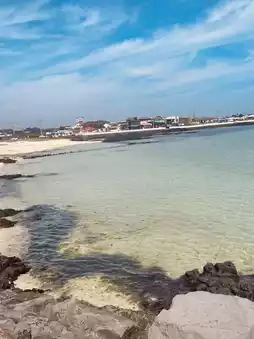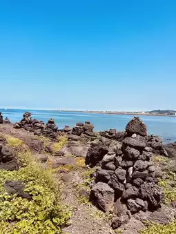 The serene Pyeongdaeri beach is framed by striking volcanic rocks that add a rugged charm to the coastline. Beyond these natural formations, the village area unfolds with quaint cafes and stylish guesthouses, subtly echoing the ocean’s calmness. Many of these establishments are perched to capture breathtaking ocean views, with coffee shops that highlight the contrast between the deep blue sea and the dark volcanic stone. This unique blend of natural beauty—where tranquil sands meet dramatic rock—and modern, chic amenities creates an idyllic escape for the contemporary traveler.