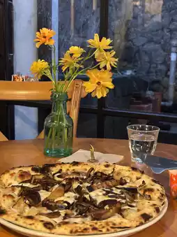 📌It takes a while for the pizza to come out because it's wood-fired pizza!