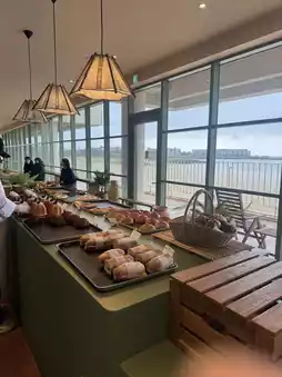I enjoyed coffee and bakery while looking at the sea at Seogwipian Bakery. This place offers a truly exotic atmosphere and a great view of Jeju Island. It's a perfect spot to relax with delicious bread and coffee. The pretzel with Greek yogurt was especially delicious. I had a really comfortable and pleasant time in an exotic atmosphere.