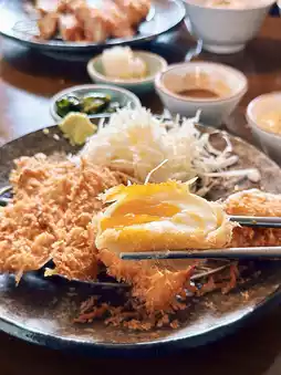 The food is cooked to order, so it may take some time, but they provide appetizers like porridge or soup while you wait. If you've had black pork tonkatsu before, you should try their fresh fish katsu, which is made from freshly prepared fish. The texture and taste are on a different level compared to frozen ones, and it will change your perception of fish katsu.