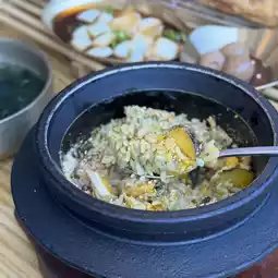 you can enjoy a generous portion of grilled hairtail, abalone stone pot rice, grilled mackerel, and seaweed soup.